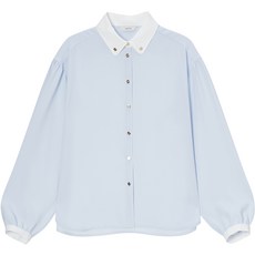 여성용 블루 버튼 다운 긴팔 셔츠 HSSH2D909B1
